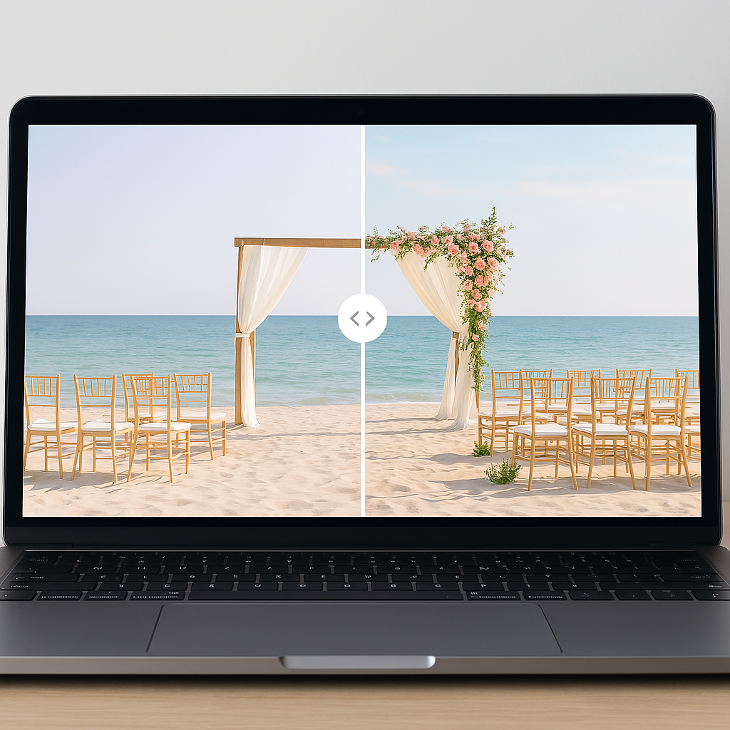 Stop guessing how your venue will look. Use AI to upload your photos, apply your style, and visualize your wedding decor in minutes. Eliminate risk and plan with data-backed confidence.